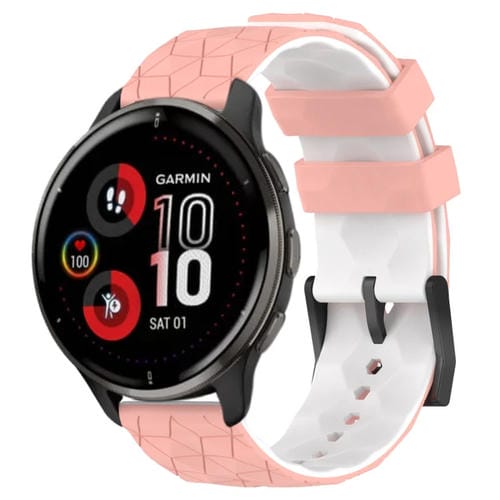 Banda de Reloj Garmin Venu 2 Plus 20mm patrón de fútbol silicona dos colores (Rosa + Blanco)