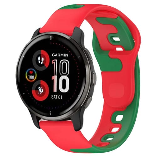 Correa de Reloj para Garmin Venu 2 Plus de Silicona Doble Color 20mm (Rojo + Verde)