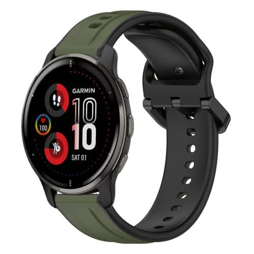 Correa de Reloj Silicona para Garmin Venu 2 Plus 20mm (Verde Oscuro + Negro)