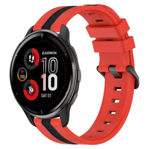 Correa de Reloj para Garmin Venu 2 Plus Silicona Dos Colores Vertical 20mm (Rojo + Negro)