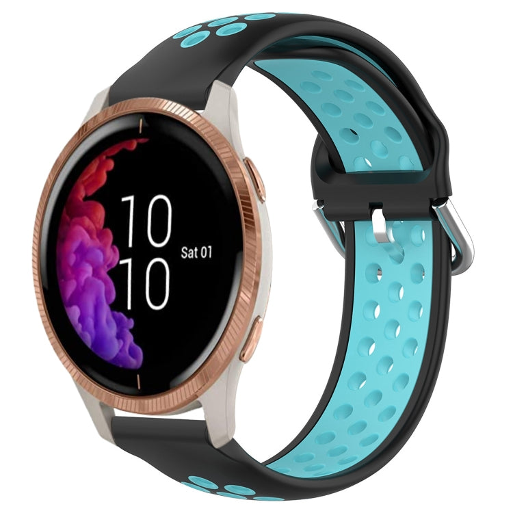 Correa de Reloj de Silicona Deportiva para Garmin Venu 20mm Transpirable Perforada (Negro + Azul)