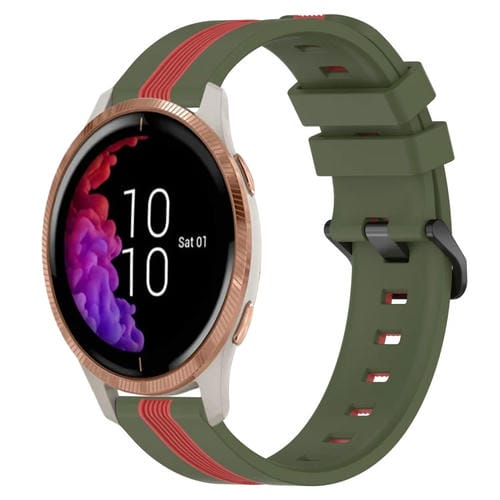 Correa de Reloj para Garmin Venu Silicona Bicolor Vertical 20mm (Verde Militar + Rojo)