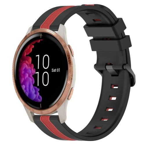 Correa de Reloj para Garmin Venu Silicona Dos Colores Vertical 20mm (Negro + Rojo)
