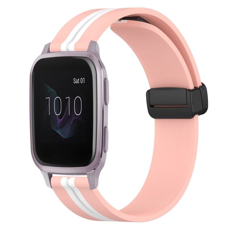 Correa de Reloj de Silicona para Garmin Venu Sq 20mm con Cierre Magnético Plegable (Rosa + Blanco)