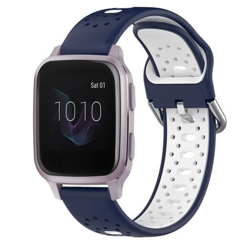 Correa de Reloj para Garmin Venu Sq Silicona Bicolor Transpirable 20mm (Azul Medianoche + Blanco)