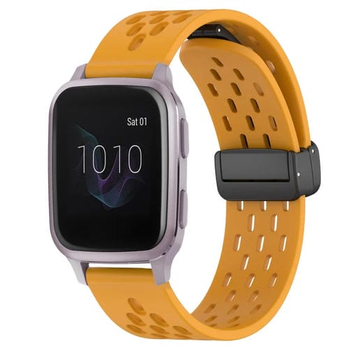 Correa de Reloj para Garmin Venu Sq de Silicona con Cierre Magnético Plegable de 20mm (Amarillo)