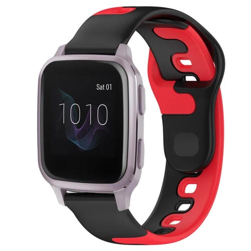 Correa de Reloj Silicona Doble Color para Garmin Venu Sq 20mm (Negro + Rojo)