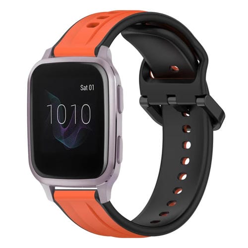 Correa de Silicona para Garmin Venu Sq 20mm con Bucle Convexo (Naranja + Negro)