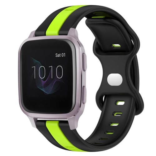 Correa de Reloj Garmin Venu Sq Silicona Dos Colores con Hebilla de Mariposa 20mm (Negro + Verde)
