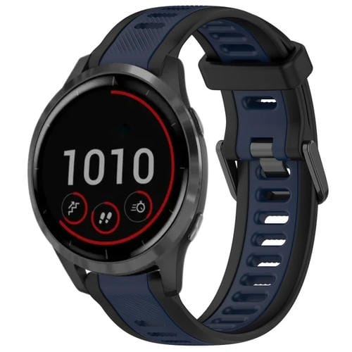For Garmin Vivoactive 4 22mm Dual-color Textured Silicone Watch Band (Midnight Blue+Black)