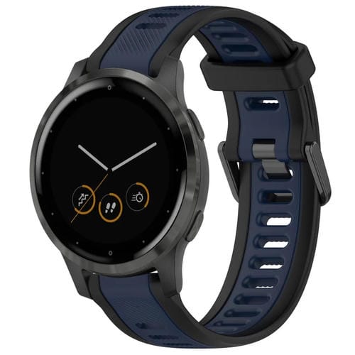 For Garmin Vivoactive 4S 18mm Two-color Textured Silicone Watch Band (Midnight Blue + Black)