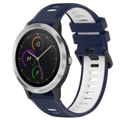Correa de Silicona 20mm para Garmin Vivoactive3 Sports (Azul Medianoche + Blanco)