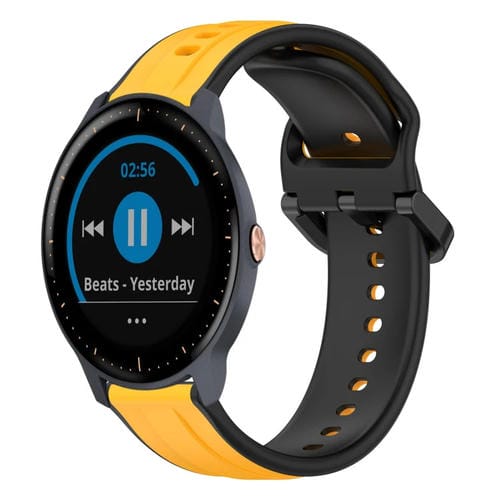 Correa de Reloj para Garmin Vivoactive3 Music Silicona Dos Colores Bucle Convexo 20mm (Amarillo + Negro)