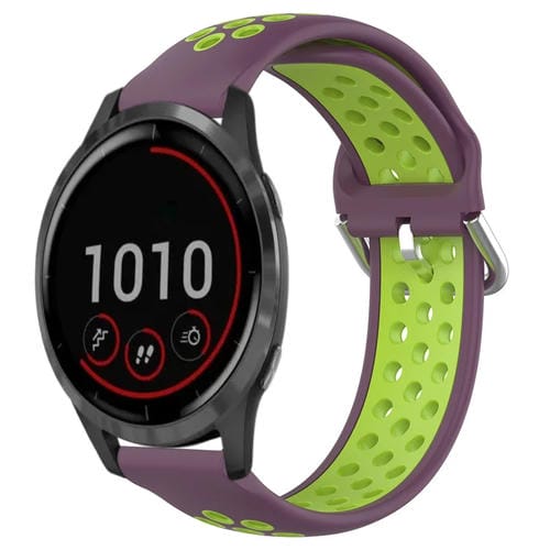 Correa de Reloj Silicona Deportiva para Garmin Vivoactive4 22mm Perforada (Púrpura + Lima)