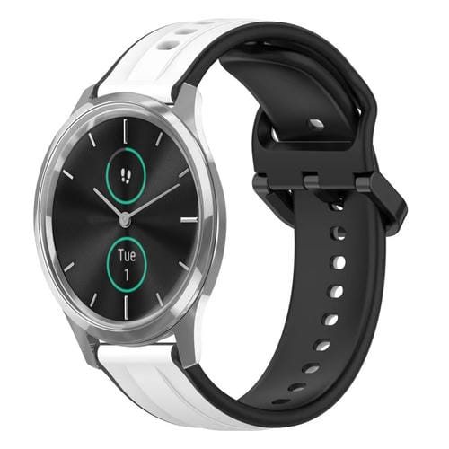 Correa de Silicona para Garmin Vivomove Luxe 20mm con Bucle Convexo (Blanco + Negro)