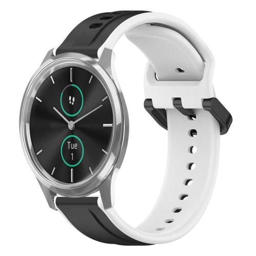 Correa de Silicona para Garmin Vivomove Luxe 20mm con Bucle Convexo (Negro + Blanco)