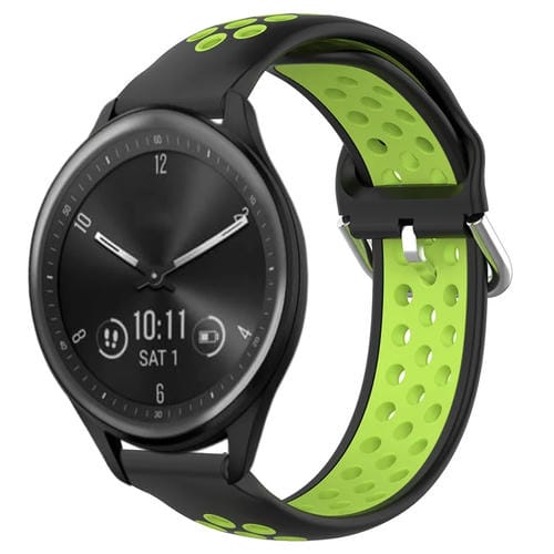 Banda de Reloj para Garmin Vivomove Sport 20mm Silicona Deportiva Perforada (Negro + Lima)