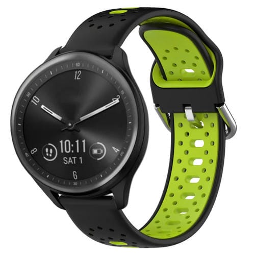 Banda de Reloj Garmin Vivomove Sport 20mm Silicona Transpirable Dos Colores (Negro + Verde Lima)
