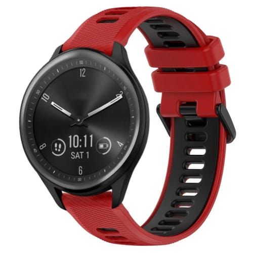 Correa para Garmin Vivomove Sport 20mm Silicona Bicolor (Rojo + Negro)