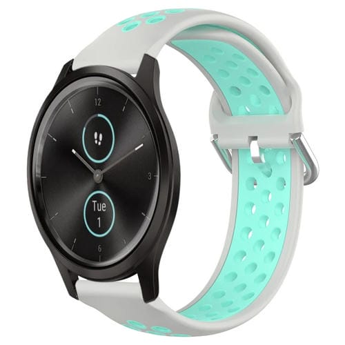 Banda de Reloj para Garmin Vivomove Style 20mm Silicona Deportiva Transpirable Perforada (Gris + Pato de Agua)