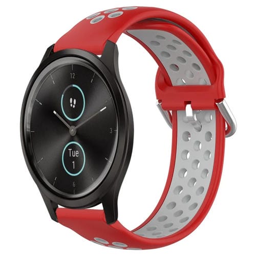 Banda de Reloj Silicona Deportiva para Garmin Vivomove Style 20mm Perforada (Rojo + Gris)