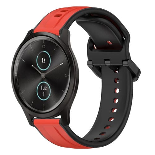 Correa de Reloj para Garmin Vivomove Style 20mm Convex Loop Silicona Dos Colores (Rojo + Negro)