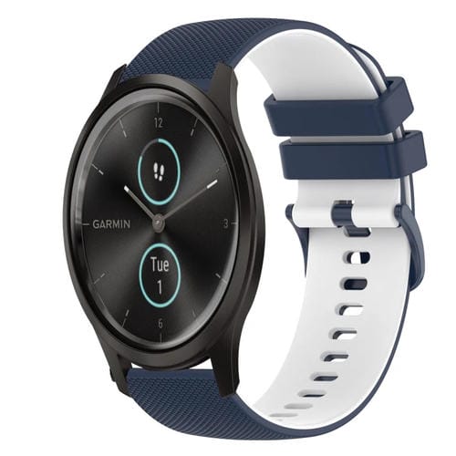 Correa de Silicona para Garmin Vivomove Style 20mm Dos Colores a Cuadros (Azul Oscuro + Blanco)