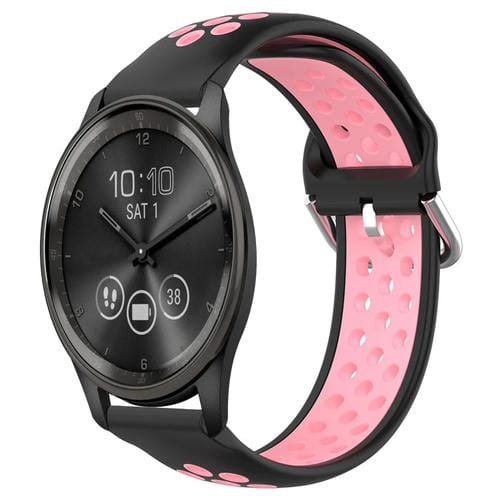 Correa de Silicona Deportiva para Garmin Vivomove Trend 20mm Transpirable Perforada (Negro + Rosa)