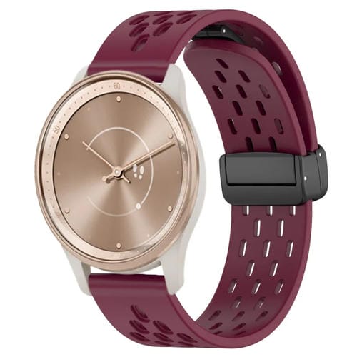 Correa de Reloj Silicona para Garminmove Trend con Cierre Magnético Plegable de 20mm (Rojo Vino)