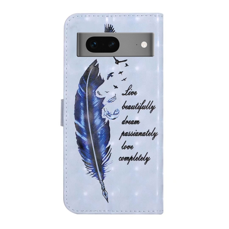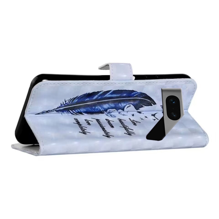 Funda de Cuero para Google Pixel 7 con Dibujo 3D en Relieve al Óleo (Pluma Azul)