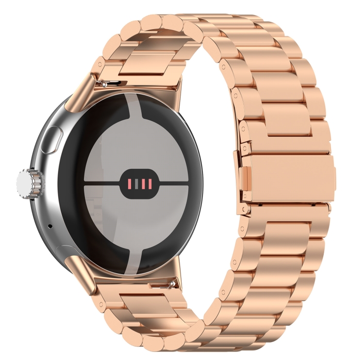 Correa de Reloj para Google Pixel Watch 2 Metal Acero Inoxidable con Tres Cuentas (Oro Rosa)