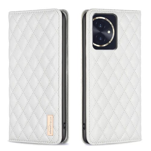 Funda para Honor 100 con Tapa de Cuero Magnético Diamond Lattice (Blanco)