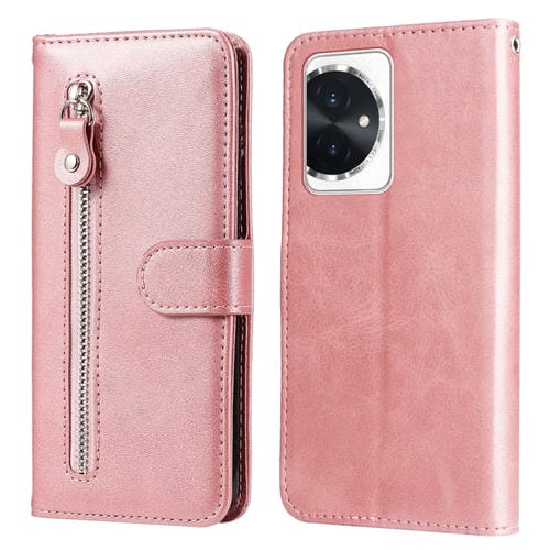 For Honor 100 Fashion Calfskin Texture Zipper Leather Phone Case(Rose Gold)