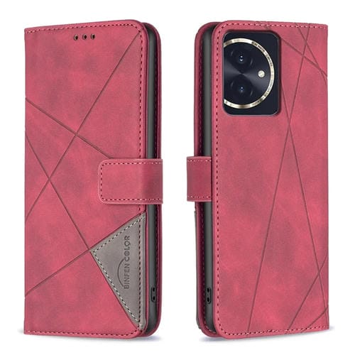 Funda para Honor 100 de Cuero con Textura de Rombo y Hebilla Magnética (Rojo)