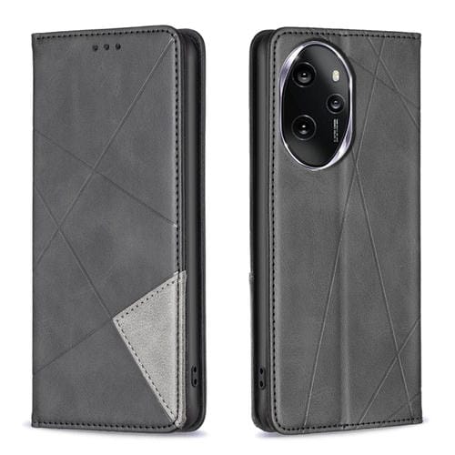 Funda de Cuero Magnética para Honor 100 Pro con Textura Rombo (Negro)