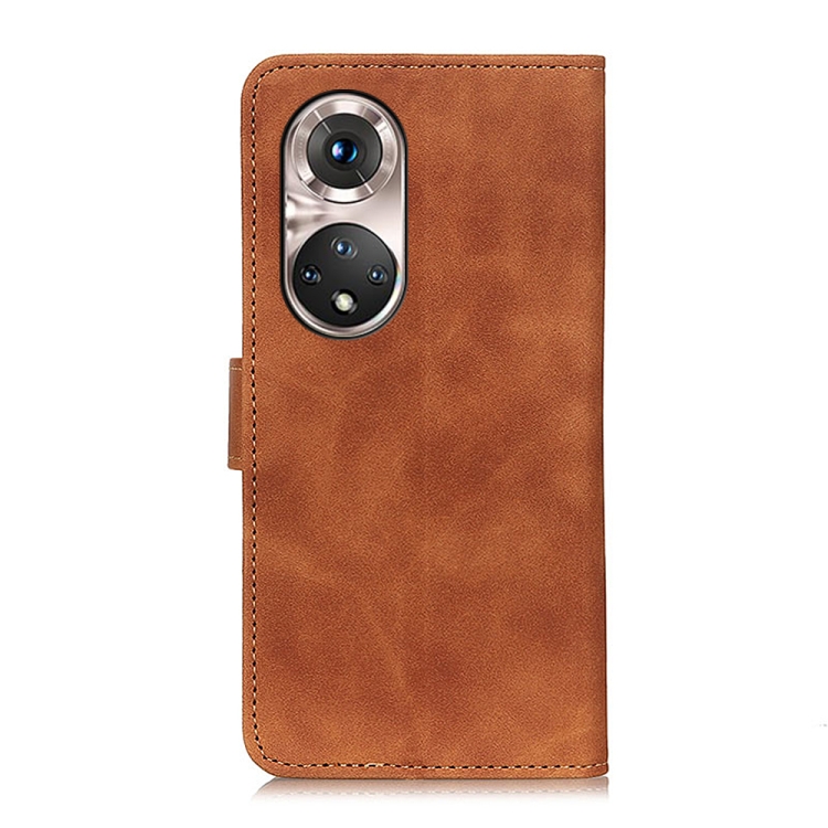 Para Honor 50 Pro Khazneh Retro Texture PU + TPU Funda de cuero Horizontal Flip Funda con soporte y tragamonedas y billetera (Marrón)