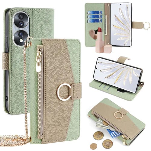 Funda para Teléfono Honor 70 Cuero Textura Litchi Cruzada (Verde)