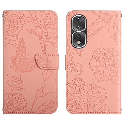 Funda de Cuero para Honor 80 Pro HT03 Skin Feel Butterfly con Tapa en Relieve (Rosa)
