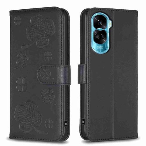 Funda para Honor 90 Lite X50I de Cuero con Relieve de Cuatro Hojas (Negro)