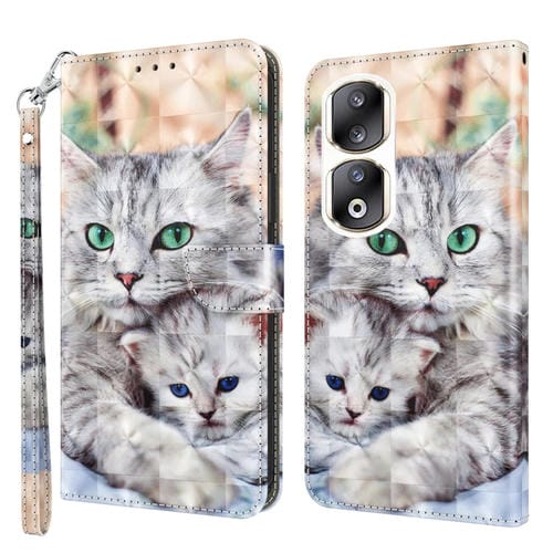 Funda de Cuero para Honor 90 Pro Pintada en 3D Dos Gatos Amorosos