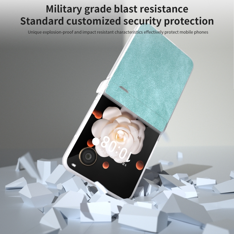 - 1x Funda para Honor Magic V Flip con borde transparente esmerilado de Cuero PU (Azul Claro)