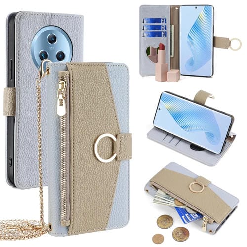 Funda de Cuero para Honor Magic5 Crossbody con Textura Litchi (Azul)