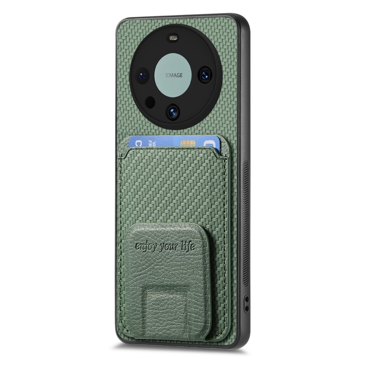 Funda para Honor Magic5 Pro con Soporte Plegable y Bolsa para Tarjetas de Fibra de Carbono (Verde)