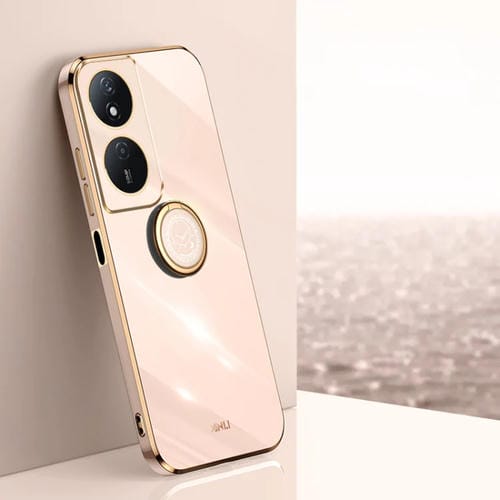 Estuche TPU Xinli para Honor Play 50 Plus 5G con Electrochapado 6D, Borde Recto y Soporte para Anillo (Rosa)