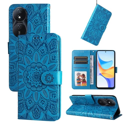 Funda para Honor Play 50 Plus de Cuero con Girasol en Relieve (Azul)
