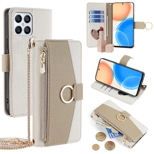 Funda Cruzada de Cuero para Honor X30I y X8 con Textura Litchi (Blanco)