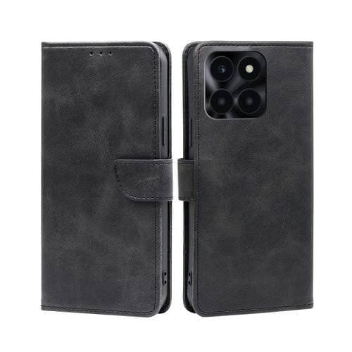 Funda para Honor X6A 4G de Cuero con Tapa, Hebilla y Textura de Becerro (Negro)