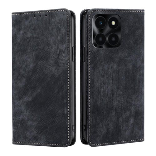 Funda de Cuero Magnética para Honor X6A 4G con Rfid y Cepillo Antirrobo (Negro)