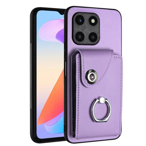 Funda para Honor X6A de PU con Soporte para Anillo y Bolsa para Tarjeta de Órgano (Púrpura)