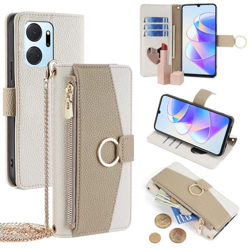 Funda Cruzada de Cuero para Honor X7A con Textura Litchi (Blanco)